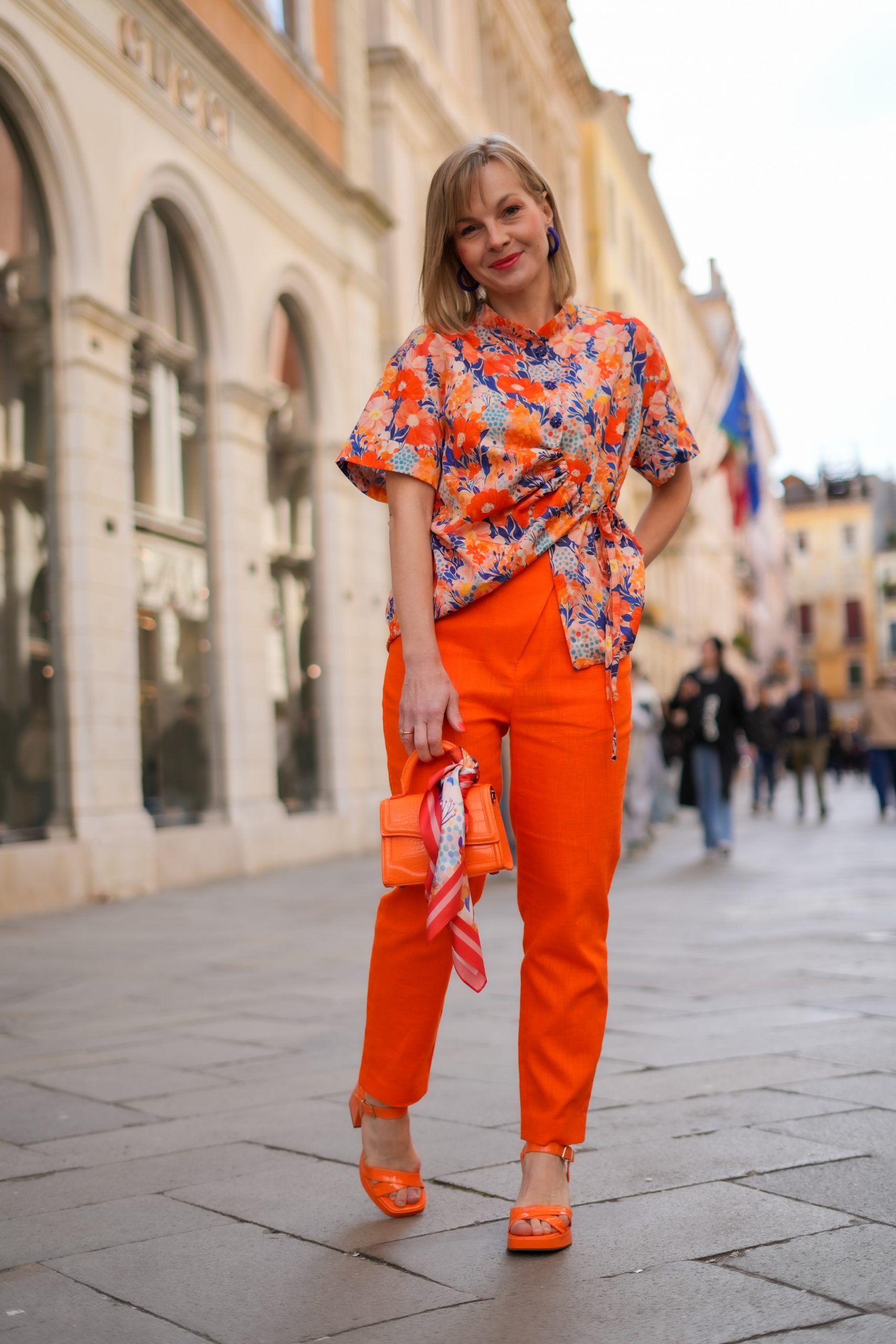 Le pantalon Rialto est un modèle plein de caractère, qui peut être porté avec la veste tailleur Palazzo pour un ensemble structuré, ou avec le chemisier Fenice pour un look plus décontracté.